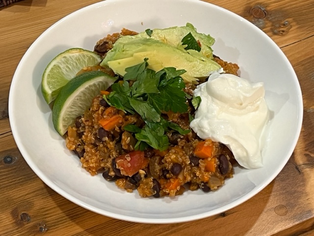 - Rinse and drain quinoa and black beans
