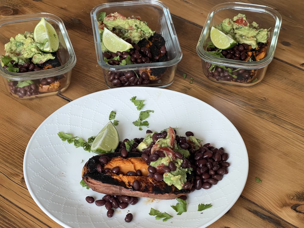 - Enjoy – this works great as a entertaining brunch componetnat or as meal prep diner + lunch the next day for 4 people. The amba and tahini sauces really make the dish pop.